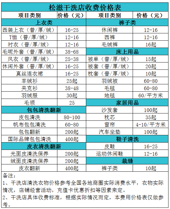 枝城干洗店收費價格表【詳細收費標準】怎么收費更賺錢