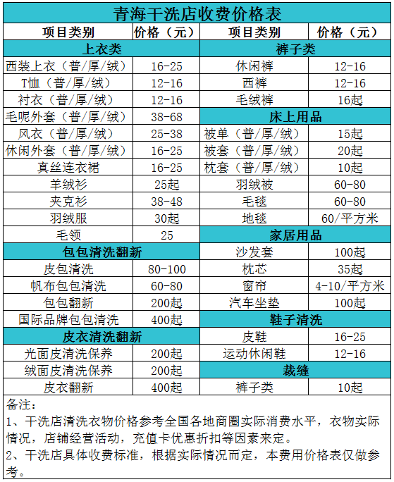 青海干洗店收費價格表【詳細收費標準】怎么收費更賺錢