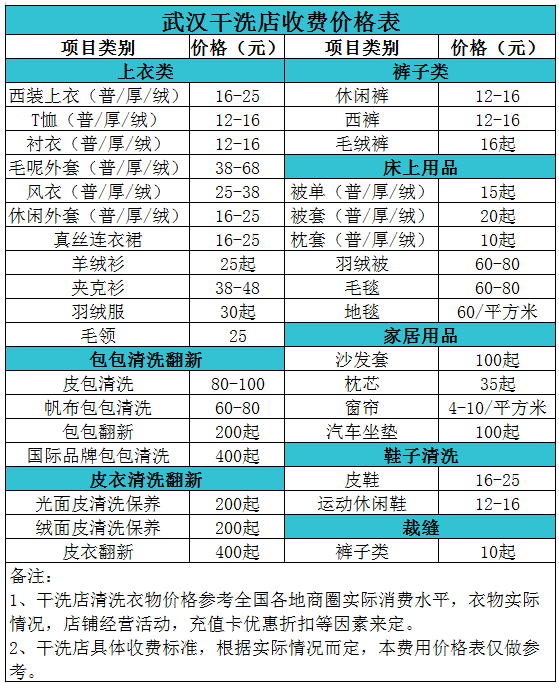 武漢干洗店收費價格表【詳細收費標準】怎么收費更賺錢